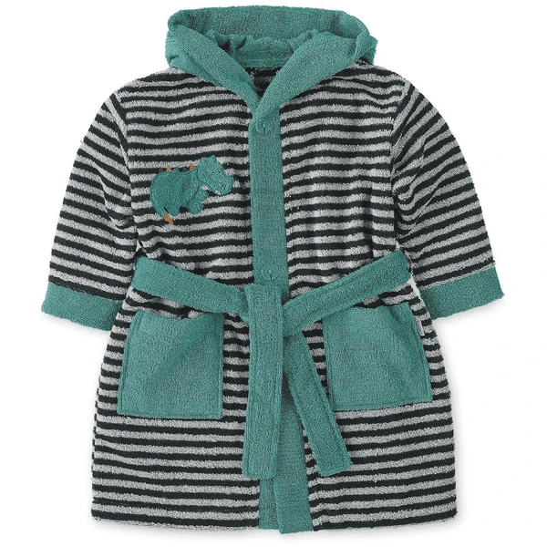 Der Kapuzen-Bademantel aus weichem Frottee, mit appliziertem Stickmotiv
